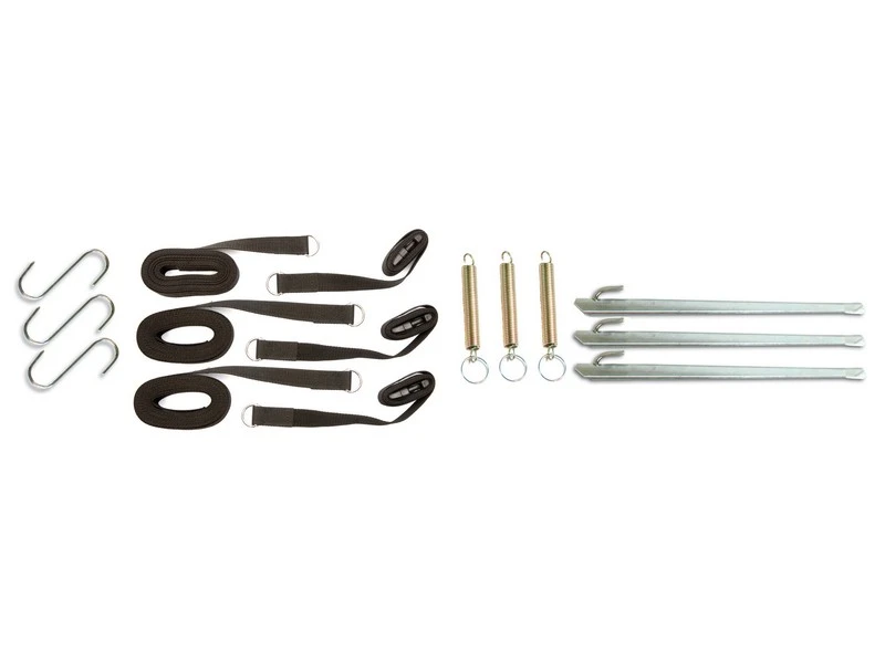 Set bestaande uit 3 stormbanden, 3 veren, 3 stormharingen, en 3 s-haken