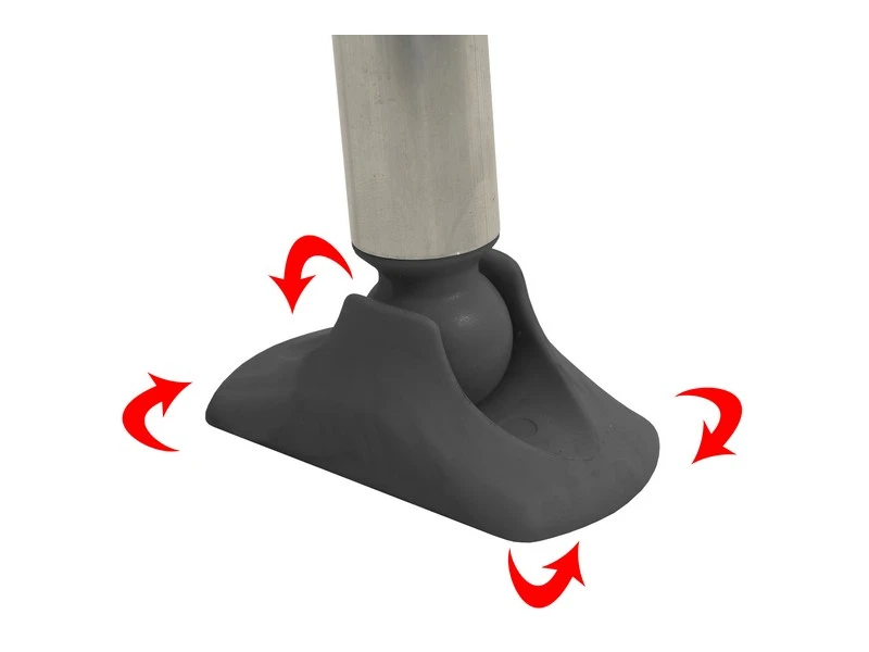 Aluminium frame, aluminium tafelrand en stabilisatievoetjes.