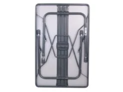 Een luxe en stijlvolle tafel. Deze lichtgewicht campingtafel is voorzien van een hittebestendig en watervast tafelblad en heeft een extra verstevigde aluminium constructie. Daarnaast zorgt de afwerking van de poten en van de tafelrand voor een stijlvolle uitstraling. De tafel beschikt over traploos verstelbare poten (52-74 cm) die zijn in te klappen, hierdoor is deze tafel eenvoudig en compact te vervoeren (ingeklapt (lxbxh): 80x60x4). Doordat de tafel beschikt over stabilisatie voetjes, staat deze tafel op iedere ondergrond stabiel. Maximale belasting: 50 kilogram.