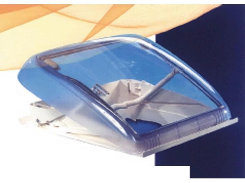 Mini Heki Plus dakluik scharniert aan de voorzijde. Is in 3 standen d.m.v. een beugel te openen. Past in een gatmaat van 400 x 400mm. Grote dubbelglas koepel van onbreekbaar polycarbonaat. Gewicht 3,3kg. Met verduistering en muggengaas.